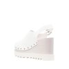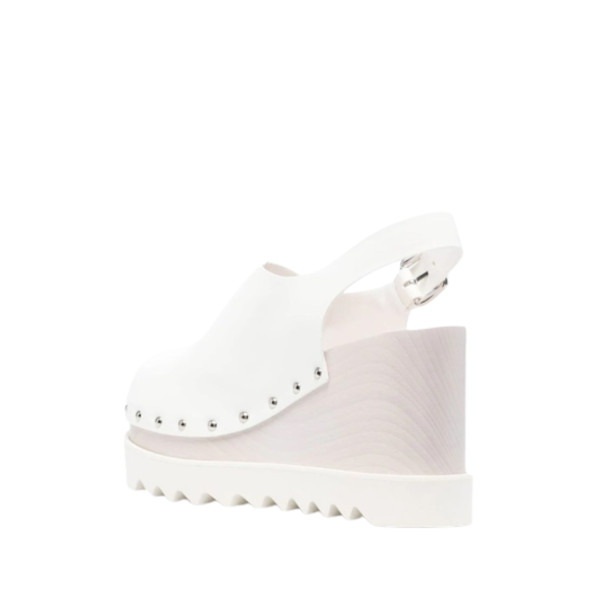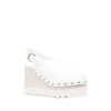 Elyse 105Mm Platform Clogs From Stella Mccartney Featuring White, Faux Leather, Silver-Tone Stud Detailing, Round Toe, Buckle-Fastening Slingback Strap, High Wedge Heel, Platform Sole And Ridged Rubber Sole.